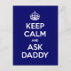 Postcard Sprichwort "Behalt Calm and Aks Daddy" im Stil des britischen Weltposters "Keep Calm and Carry On". Sie können Ihre eigene Hintergrundfarbe auswählen, indem Sie den Button 'Anpassen!' und 'Bearbeiten' -> 'Hintergrund' verwenden.