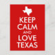 Behalt Calm und Liebe Texas Red Postkarte