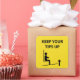 Ein Tipp-Korb, auf dem steht: "Behalt deine Tipps nach oben" und zeigt einen Skifahrer auf einem Sessellift mit der Löschwarnung, um deine Tipps behalten