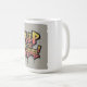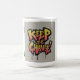 Ein lebhaftes und farbenfroh gestaltetes Tasse-Design mit dem Text "Behalt the Change" in einem kühlen, auffälligen Schriftart. Der Text wird in einer Vielzahl von Farben und Mustern angezeigt, sodass er eine lustige und spielerische Ergänzung zu jeder Küche oder Tischplatte ist.