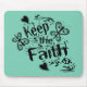 Ein lustiges Retro-Standard-Mauspad, das "Behalt den Glauben" mit Grunge-Schriftzeichen mit Schmetterlingen, gepunkteten Hörnern und anderen Details sagt. Die Schmetterlinge & Herzen sind originelle Kunst.