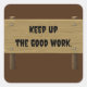 Behalt die gute Arbeit auf. Quadratischer Aufkleber