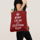 Machen Sie mit unserer leicht zu bedienenden Taschenvorlage Ihr eigenes einzigartiges Angebot "Keep Calm and Carry On". Stich 'personalize', um den Text zu einem beliebigen Satz zu bearbeiten. Stich 'Weitere Anpassung', um die Farbe von Krone und Schriftart anzupassen.
