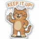 Mit diesem niedlichen Retro-Katzenaufkleber "Behalt es auf!" mit einem fröhlichen orangefarbenen Tabby, das einen Daumen hochblitzt, kann man lächeln. Ideal für Laptops, Wasserflaschen, Planer und vieles mehr. Dieser Kawaii-Aufkleber ist ein lustiger Weg, Ermutigungen mit Freunden, Kollegen oder sich selbst zu teilen. Dauerhaft, lebendig und voller Persönlichkeit, ist es ideal für jeden, der einen kleinen Schub an feliner Motivation braucht!