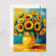 Eine wunderschöne Postkarte, um in Touch mit Freunden und Familie behalten, während Sie unterwegs sind. Diese Postkarte hatte eine wunderschöne Abbildung einer gelben Sonnenblume in einer hübschen gelben Vase im Stile eines Impasto.