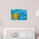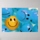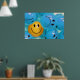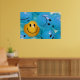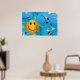 Ein inspirierendes Poster, das einen lächelnden, gelben Ball in einem Meer von runzelnden blauen Kugeln darstellt und die Bedeutung des behaltend Gefühls von Optimismus und Spaß darstellt.