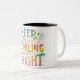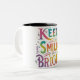 Ein lebendiges T - Shirt-Design mit dem Text "Lächeln Tag Behalt" in einem spielerischen Retro-Stil Schriftart.