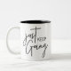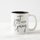 Behalt, mit modernem, trendigem, schwarz geschrieb zweifarbige tasse