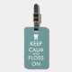 Behalt ruhig und schwebt auf dem Gepäckanhänger mit dem Zahnlogo. Personalisierbar für Reisetaschen und Koffer. Individuell anpassbares Vintages Design für Reisende. Aquamarine oder beliebig veränderte Farbe. Erstellen Sie Ihre eigene lustige Behalt Ruhe und führen Sie Zahnparodie weiter. Hintergrundfarbe und Text können geändert werden.
