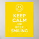 "Behalt Ruhe und Behalt Lächeln" ist eine Variante des Posters "Keep Calm and Carry On", das im 2. Weltkrieg verwendet wurde. Wenn Sie interessiert sind, folgen Sie der Geschichte hinter dem Original: youtu.be/s16YLhKzfNI