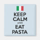 Behalt Ruhe und esse Pasta-Kühlschrankmagnet. Dieser Magnet weist die Flagge Italiens auf. Ein tolles Design für eine italienische Küche oder irgendeinen Pasta-Liebhaber. Es gibt nichts, was eine große Schüssel Nudeln nicht lösen kann! Ideal für Nonna oder Nonnos Küche.