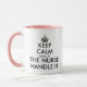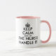 Behalt Ruhe und lass der Krankenschwester Griff it Kaffee Tasse. Machen Sie Ihre eigene lustige Keep Calm und Carry On Parodie für RN Krankenschwestern, Krankenschwestern, Krankenpfleger Abschluss und mehr. Moderne Typografie-Vorlage mit Krone. Doppelter Druck. Pflege Spaß. Combo Farbbecher mit rosa Griff und innen. Benutzerdefiniertes Design mit Text und Krone in jeder Farbe.