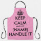 Behalt Ruhe und lass (Name) behandeln es lustig rosa GRILLEN Schürze für Männer und Frauen. Vintage Typografie Vorlage mit Krone. Personalisierte Kochkunst Schürze in jeder Farbe. Trendy Vorlage mit großen Buchstaben Typografie Design. Fügen Sie Ihren eigenen Namen oder ein humorvolles Zitat hinzu. Schaffen Sie Ihr eigenes Geburtstagsgeschenk für Grillmeister, Mama, Vater, Schwester, Ehefrau, Mutter, Mann, Ehemann, Freund, Onkel, Tante, Freund, Freundin, Großmutter, Großvater, Kinder, Chef, Mitarbeiter, Koch, Koch, Kollege, Trainer, Krankenschwester, Hochzeitskamerad usw. Erhältlich in kleinen, mittleren und großen Größen. Auch für das Abendessen Party, Backen, Geschirrspülen, Kunst & Kunsthandwerk usw. Machen Sie sich und ihre für ihn und sie. Spaß Geschenke für Freunde und Familie.