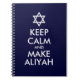 Enthält den Text "CALM BEHALTEN UND ALIYAH MACHEN". Alija (ע ל י ה), was Aufstieg bedeutet, ist das hebräische Wort für die Einwanderung aus der Diaspora nach Israel. Aliyah gilt als "hinauf" in Richtung Jerusalem. Wofür warte du?