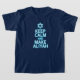 Blau-Weiß-Text mit dem Text "BEHALT CALM UND MAKE ALIYAH". Alija (ע ל י ה), was Aufstieg bedeutet, ist das hebräische Wort für die Einwanderung aus der Diaspora nach Israel. Aliyah gilt als "hinauf" in Richtung Jerusalem. Wofür warte du?