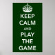 Behalt Ruhe und spiele das Game Poster in Weiß mit grünem Hintergrund
