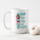 Behalt Ruhe und surfe auf brünettem Mädchen Kaffeetasse
