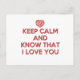 Behalt Ruhe und weiß, dass ich dich Liebe Postkarte