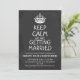 Behalt Calm Wir bekommen Verheiratete chalkboard Hochzeitseinladungen mit einer Touch Spaß .. chalkboard Hintergrund mit weißem Text und eine Krone im gleichen Stil wie die behaltend Ruhe und weiterhin Design .. personalisierbare Hochzeitsankündigungen von Ricaso .