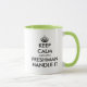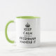 Behalt ruhig und lass einem Frischmann mit der lustigen Kaffee-Tasse. Erstellen Sie Ihre eigene lustige Keep Calm und Carry On Quote. Moderne Typografie-Vorlage mit Krone. Spaß personalisierte Becher für Absolventen der High School und Unis. Fügen Sie Ihren eigenen benutzerdefinierten Text hinzu. Doppelsiegreicher Druck mit farbigem Griff.