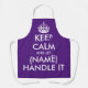 Behalt Ruhe und lass (Name) behandeln es lustig lila GRILLEN Schürze für Männer und Frauen. Moderne Typografie-Vorlage mit Krone. Personalisierte Kochkunst Schürze in jeder Farbe. Trendy Vorlage mit großen Buchstaben Typografie Design. Fügen Sie Ihren eigenen Namen oder ein humorvolles Zitat hinzu. Schaffen Sie sich ein eigenes Geburtstagsgeschenk für Grillmeister, Mama, Vater, Schwester, Ehefrau, Mutter, Mann, Ehemann, Freund, Onkel, Tante, Freund, Freundin, Großmutter, Großvater, Kinder, Chef, Mitarbeiter, Koch, Koch, Kollege, Trainer, Krankenschwester, Hochzeitskinder usw. Erhältlich in kleinen, mittleren und großen Größen. Auch für das Abendessen Party, Backen, Geschirrspülen, Kunst & Handwerk etc. gut geeignet. Machen Sie ihm und ihr einen. Spaß Geschenke für Freunde und Familie.