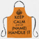 Behalt Ruhe und lass (Name) behandeln es lustig orange GRILLEN Schürze für Männer und Frauen. Vintage Typografie Vorlage mit Krone. Personalisierte Kochkunst Schürze in jeder Farbe. Trendy Vorlage mit großen Buchstaben Typografie Design. Fügen Sie Ihren eigenen Namen oder ein humorvolles Zitat hinzu. Schaffen Sie Ihr eigenes Geburtstagsgeschenk für Grillmeister, Mama, Vater, Schwester, Ehefrau, Mutter, Mann, Ehemann, Freund, Onkel, Tante, Freund, Freundin, Großmutter, Großvater, Kinder, Chef, Mitarbeiter, Koch, Koch, Kollege, Trainer, Krankenschwester, Hochzeitskamerad usw. Erhältlich in kleinen, mittleren und großen Größen. Auch für das Abendessen Party, Backen, Geschirrspülen, Kunst & Kunsthandwerk usw. Machen Sie sich und ihre für ihn und sie. Spaß Geschenke für Freunde und Familie.