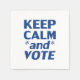 behalt ruhig und stimme blau moderne Typografie lustige Party Papierservietten. Blauer, fett formatierter Text auf weißem Hintergrund.