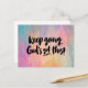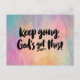 Moderne Typografie Design mit Worten in schwarzer Kalligrafie-Skript, "Behalt Going. Gott ist das Got!" auf farbenprächtigem Aquarell.
