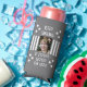 Doppelseitige 2-Foto-Seltzerhülse, kann kühler. Fügen Sie ein Foto auf der Vorderseite und ein auf der Rückseite. Behalt ein lächelndes positives Zitat. Streifen und Punkte. Grau und weiß.