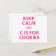 Behalten Ruhe und C ist für Cookies Postkarte