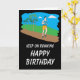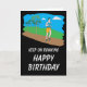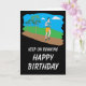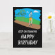 Eine bunte Geburtstagskarte für den Athleten oder den Spaßläufer. Aufmachung eines Mannes, der in das Land an einem hellen vollen Tag läuft. Set gegen einen hinteren Boden des Grases und des Himmels und dann auf einem kontrastierenden schwarzen Hintergrund, den die einfache Mitteilung "auf dem Laufen, alles Gute zum Geburtstag" behalten, wird heraus im Weiß buchstabiert. Gesetzt Ihnen besitzen Sie spezielle viel Glückmitteilung nach innen.