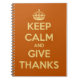 Behalten Sie Ruhe und geben Sie Dank-Ernte-Orange Notizblock