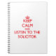 Behalten Sie Ruhe und hören Sie auf den Anwalt Notizblock