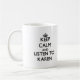 Behalten Sie Ruhe und hören Sie auf Karen Tasse