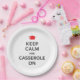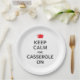 Behalten Sie Ruhe und Kasserolle an Pappteller