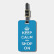 Behalten Sie Ruhe und kaufen Sie auf blauem Gepäckanhänger