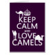 Der Entwurf liest "behalten Ruhe-und Liebe-Kamele". Er ist im Stil des traditionellen Plakats und wird mit Silhouetten der Kamele auf den Buchstaben verziert. Er ist schön und sauber und mit allen Fans der Kamele populär. Macht große Geschenke für den Kamelliebhaber in Ihrem Leben.