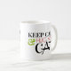 Behalten Sie Ruhe und umarmen Sie Ihre Katze Tasse