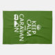 Behalten Sie Ruhe und Wohnwagen auf Geschirrtuch