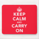 Ein mousepad, das mit einer Wiedergabe der 1939 britischen WWII Plakatlesung "geschmückt wird, behalten Ruhe und machen" im Rot weiter.