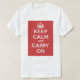 Behalten Sie Ruhe und Carry On ist einer der berühmtesten britischen Plakatslogans vom zweiten Weltkrieg und genießt jetzt eine Wiederbelebung in diese starken Zeiten. Im hellen Rot mit weißer Beschriftung mit einer königlichen Krone, stellt es ein Spaßt-shirt her zu entwerfen.
