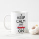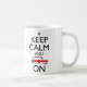 Behalten Sie Ruhe und Mini auf der Tasse, die durch das berühmte Ruhe, zu behalten inspiriert wird und Plakate weiterzumachen