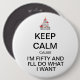 BEHALTEN Sie RUHIGEN lustigen fünfzigsten Button