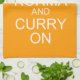 Dieses Spaßteetuch kennzeichnet eine Parodie der berühmten englischen Kriegsplakate, das Inspirieren "behalten Ruhe und weitermachen", diese Küche und Parodie, "behalten Korma und Curry auf", mit Krone und Messer und Gabel im Weiß. Hintergrundfarbe ist kundengerecht.