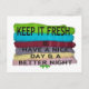 Herzlich willkommen in unserer Sammlung von "Behalt es Fresh" Text Art Design Art Postkarten, wo wir Kreativität und Inspiration verbinden, um Ihnen einzigartige und aufregende Designs zu bringen, die perfekt sind, um Botschaften von Ermutigung, Motivation und Positivität an Ihre Lieben zu senden. Unsere Postkarten zeichnen sich durch stilvolle Textkunstdesigns aus, die die Botschaft "Behalt es frisch" in einer Vielzahl von auffälligen Stilen und Farben vermitteln. Egal, ob Sie jemandem den Tag aufheitern, ermutigende Worte anbieten oder einfach nur ein wenig Beifall spenden möchten, unsere Postkarten sind der perfekte Weg, es mit Flair zu machen. Mit unserem "Design your own"-Feature bieten wir Ihnen die Möglichkeit, Postkarten, die Ihren persönlichen Stil und Ihre persönlichen Vorlieben widerspiegeln, individuell anzupassen. Egal, ob Sie personalisierte Nachrichten, Bilder oder Grafiken gewollt haben, die Möglichkeiten sind unbegrenzt. Stellen Sie sich eine Postkarte vor, die Ihre Lieblingsfarben, Schriftart und Motive zeigt - es ist eine personalisierte Touch, die Ihren Grußkarten eine zusätzliche Bedeutungs- und Gedankenebene verleiht. Unsere Postkarten sind nicht nur optisch ansprechend, sondern auch qualitativ hochwertig und dauerhaft. Sie sind aus hochwertigen Materialien gefertigt, um den Härten des Mailings zu widerstehen und gleichzeitig ihre lebhaften Farben und Details zu erhalten. Außerdem können Sie die Postkarten individuell an jeden Anlass oder Empfänger anpassen, um sicherzustellen, dass Ihre Nachricht stilvoll und wirkungsvoll ausgeliefert wird. Wir sind stolz darauf, mit Achempong Zazzle Online Shopping Store zusammenzuarbeiten, um Ihnen dieses phantastische Produkt zu bringen. Zazzles Ruf für Qualität und Kundenzufriedenheit sorgt dafür, dass Sie Postkarten erhalten, die Ihre Erwartungen erfüllen und übertreffen. Mit ihrer benutzerfreundlichen Plattform war es noch nie einfacher, Ihre personalisierten Grüße selbst zu entwerfen. Warum sollte man sich also mit generischen Postkarten abfinden, wenn man eigene Meisterwerke erschaffen kann, die inspiriert und hochgehoben werden? Ob Sie eine Botschaft der Ermutigung senden, einen Meilenstein feiern oder einfach in Touch mit Lieben bleibe werden, unsere "Behalt es frisch" Text Art Postkarten werden sicher einen unvergesslichen Eindruck machen. Beginnen Sie heute damit, Ihr eigenes zu entwerfen und ein wenig Positivität zu verbreiten, wo immer Sie hingehen.