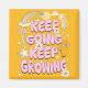 Retro-Stil motivierend "Behaltend gehen behaltend wachsen" Textgestaltung mit Pilzen, Blume, Sternen, Regenbogen, Wolken und Sonnendekoration