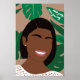 Das inspirierende Poster "Behalten gehen, behalten wachsen" zeigt eine minimalistische, fast gesichtslose Afroamerikanerin mit Grün und Bräune im Hintergrund.