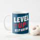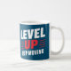 Level-Up-Behalt-Moving - Upgrade, Erhöhen, Erhöhen und Erfolgreiche Kaffee-Tasse