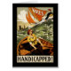 Vintage Poster Stil Bild von Frau in Ruderboot auf stürmischen Wasser, während Mann in Segelboot "hält" die Stimme. London im Hintergrund.