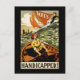 Vintage Poster Stil Bild von Frau in Ruderboot auf stürmischen Wasser, während Mann in Segelboot "hält" die Stimme. London im Hintergrund.